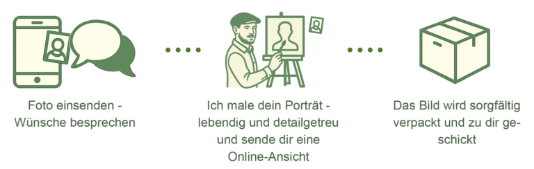 Bevor ich das Bild verschicke, bekommst du eine Vorschau. Der Restbetrag wird erst fällig, wenn alles passt und das Porträt in den Versand geht.
