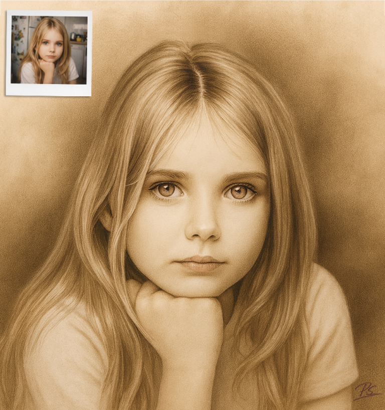Sepia auf Karton – warmer Vintage‑Look, weich, nostalgisches Flair. Beliebt bei Paar-Kinderporträt