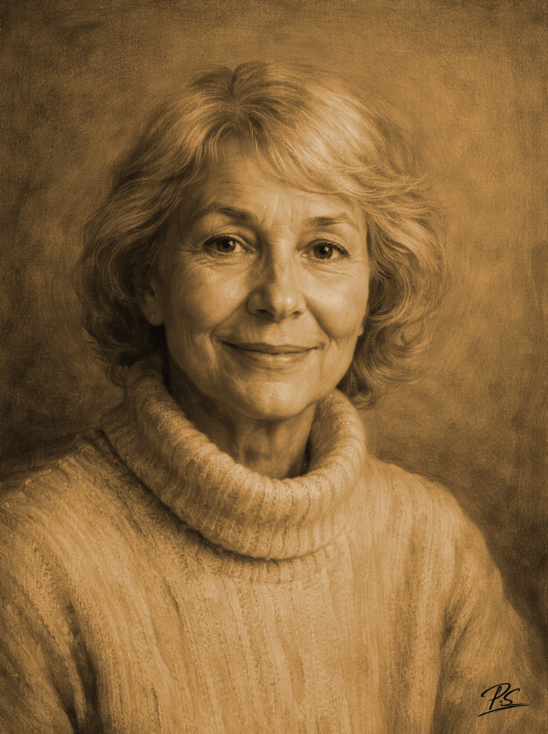Handgezeichnete Portraits nach Foto in Schwarz-Weiß oder Sepia. Unverbindlich anfragen – Foto hochladen, Format wählen, ich melde mich zeitnah.